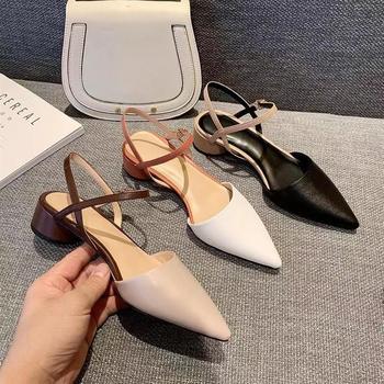 Nuevas sandalias de primavera y verano para mujer con tacones gruesos de tacón medio en punta